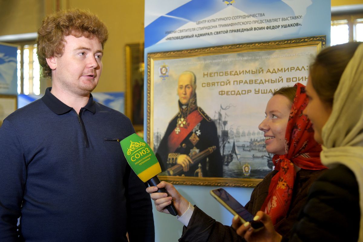 После насыщенного на события дня, у руководителя Центра культурного сотрудничества имени святителя Спиридона Тримифунтского Карпухина Павла Александровича состоялся пресс-подход, в рамках которого Павел в подробностях рассказал представителям СМИ о выставке, посвящённой святому праведному воину Феодору Ушакову.